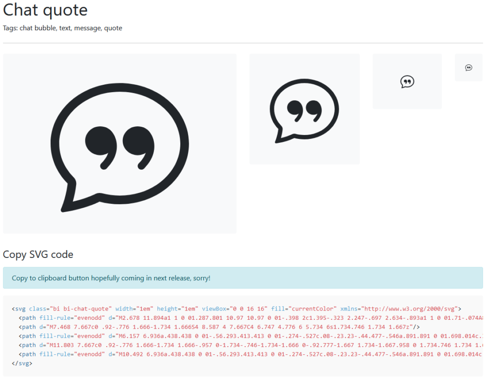 So, let’s say we go to the Bootstrap Icons page and decide we like the Chat Quote icon for something we’re building.